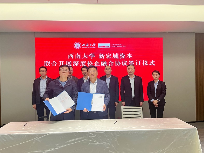10月31日下午,公司副经理高远东教授、财政金融系主任王定祥教授、副主任沈冰教授和金融硕士教育中心主任张林副教授一行前往重庆新宏域资本管理有限公司考察交流,并与对方签署了深度校企融合协议。重庆新宏域资本管理有限公司董事长周丹、副总裁左俊成及主要职能部门负责人参加了交流会。