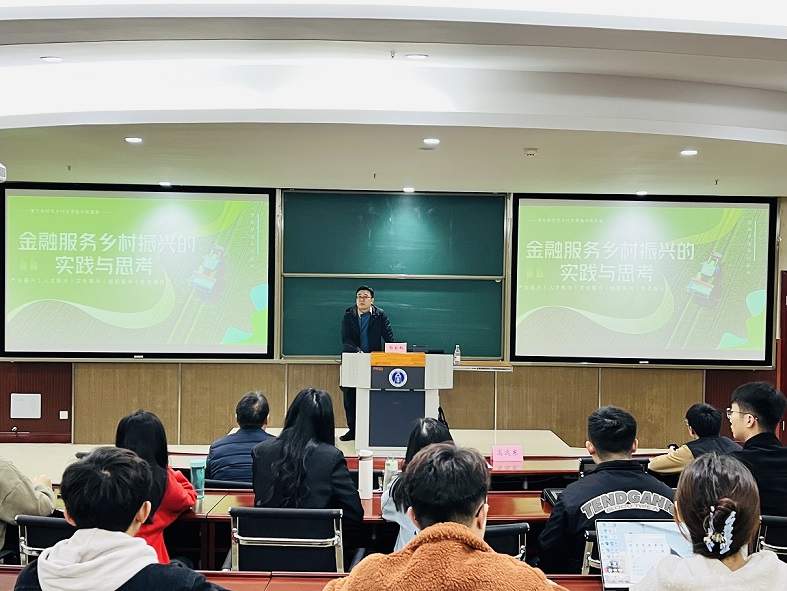 郭家权还介绍了云南黑井特色小镇打造、楚雄彝绣推广和南华县雨露白族乡产业观光休憩园(乡村振兴)项目实施,以及永仁“幸福里”社区建设过程,通过丰富的乡村振兴案例解析,引发对金融服务乡村振兴的多元化投入机制的思考。他呼吁同学们积极投身乡村振兴,用工业的理念发展农业、用金融的理念服务农业、用商业的理念经营农业,让老百姓增加财产性收入,实现共同富裕。