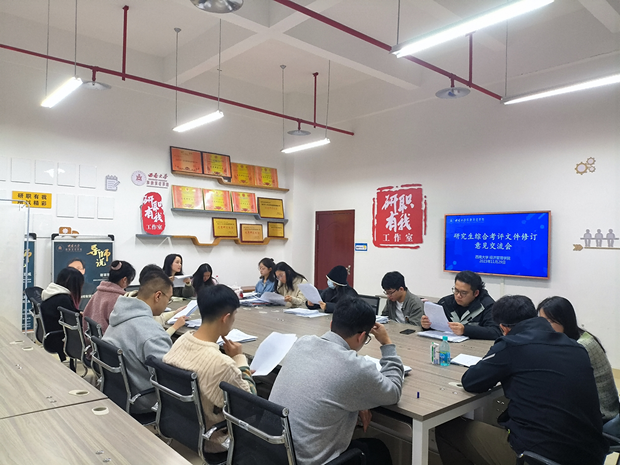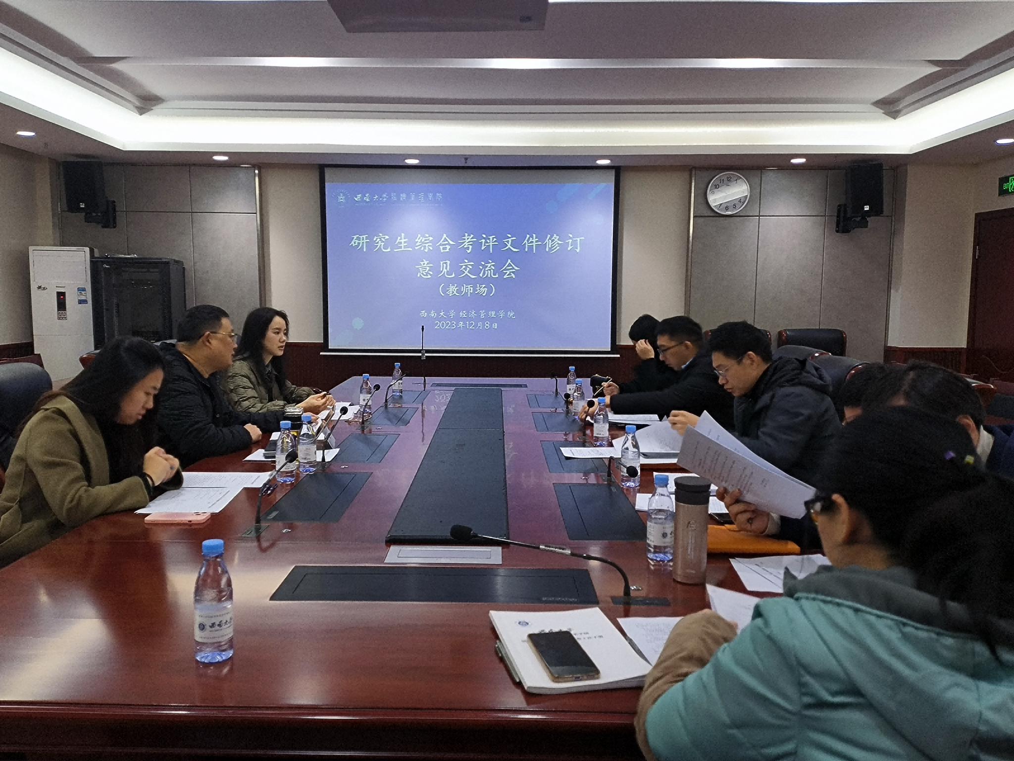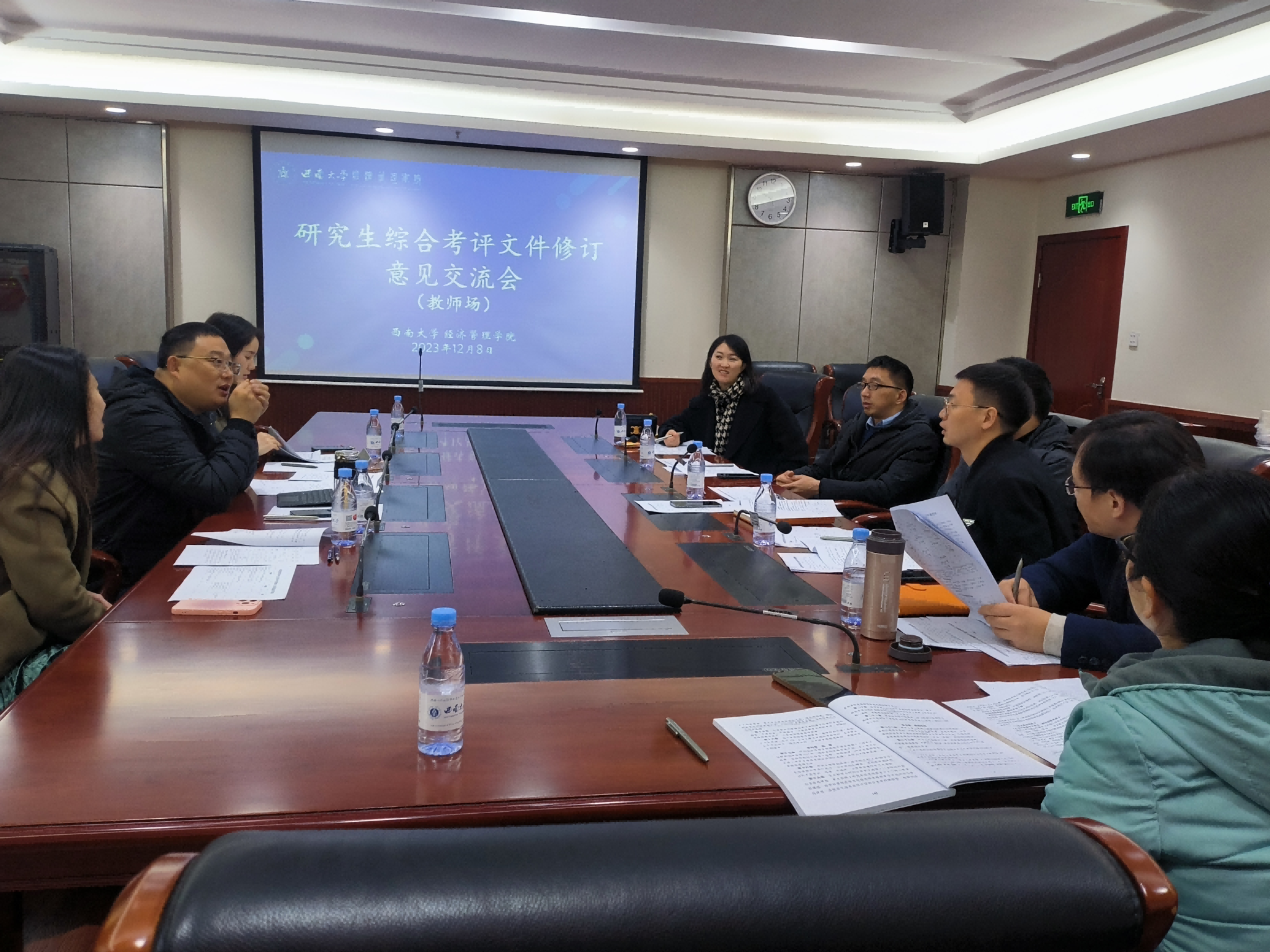 两场会议中,研究生代表和导师代表分别就综合考评实施细则各板块的内容进行了热烈讨论,对研究生课程成绩认定、科研成果、参加学术会议和专业比赛,以及研究生参与员工工作和社会实践与志愿服务等多个项目的设置情况和加分认定标准提出了很多建设性意见建议。