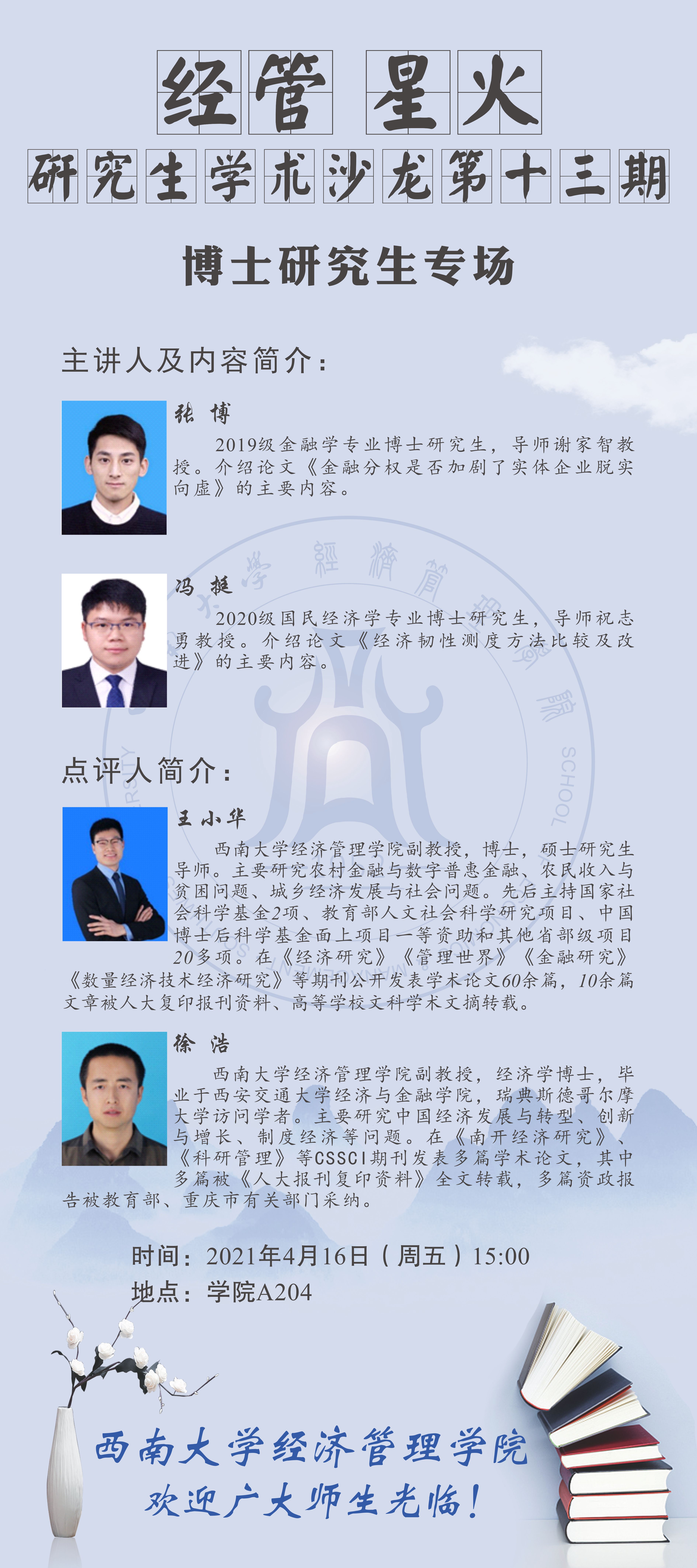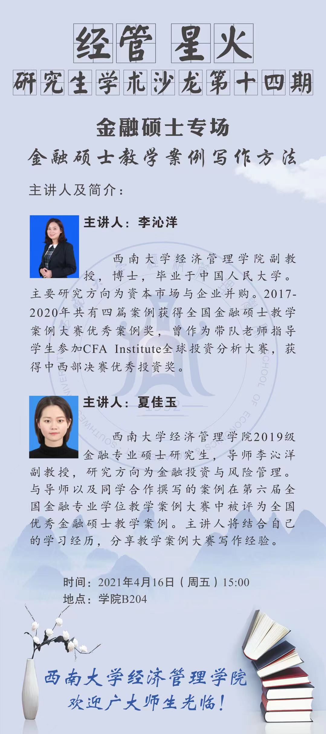 4月16日研究生学术沙龙预告