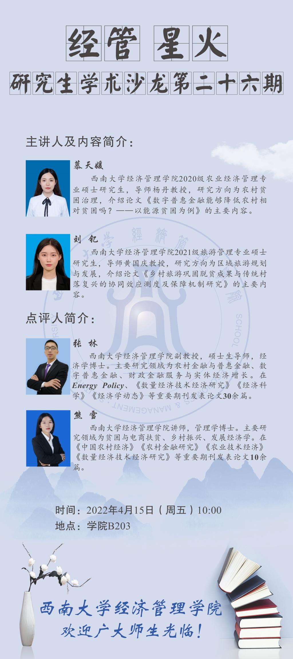 4月15日研究生学术沙龙预告