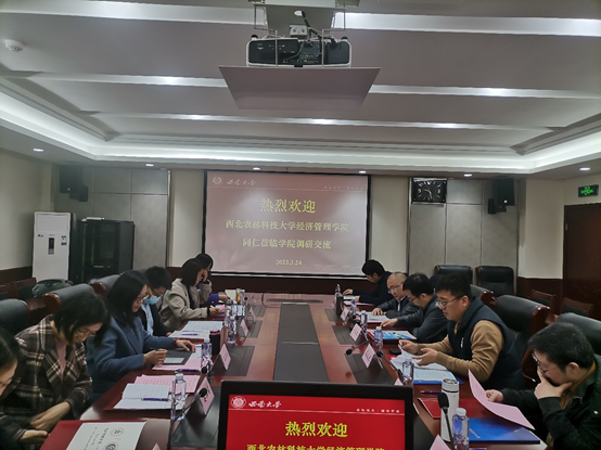 2023年3月24日上午,西北农林科技大学伟德国际VICTOR1946汪红梅副经理一行来公司就经济学专业建设进行调研交流。公司高远东副经理、教学工作办公室主任王小华教授、经济系主任李海明教授、经济系党支部书记刘自敏教授、经济系涂建军教授、经济系陈隆近教授、经济系黄磊副教授参加了此次调研座谈会,会议由刘自敏教授主持。