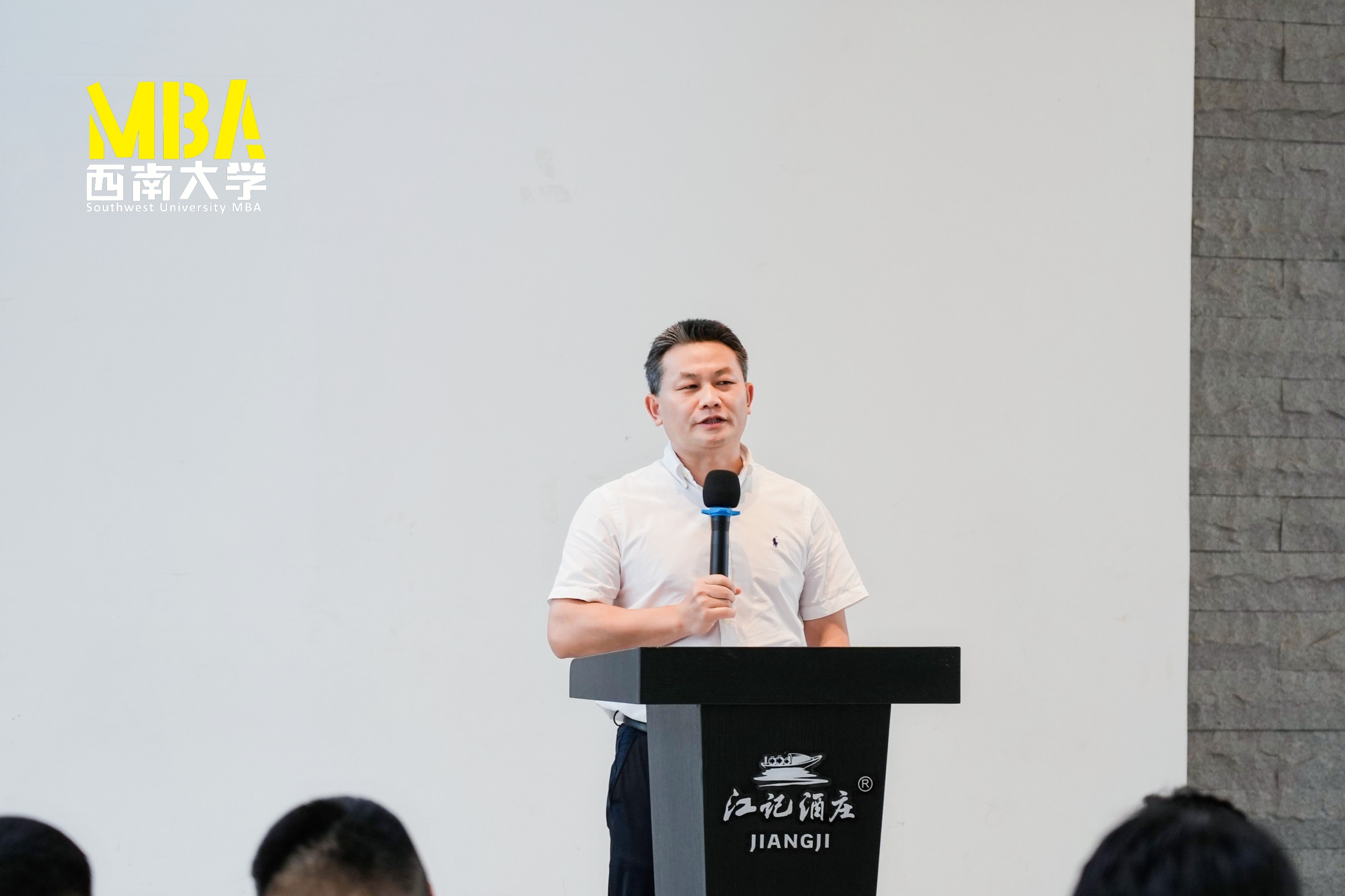 MBA教育中心执行主任金绍荣对本次研学进行了总结,他首先感谢江小白酒业对西大MBA的鼎力支持,同时希望同学们能走出校园、走进企业,展现MBA学子的求学及探索精神。