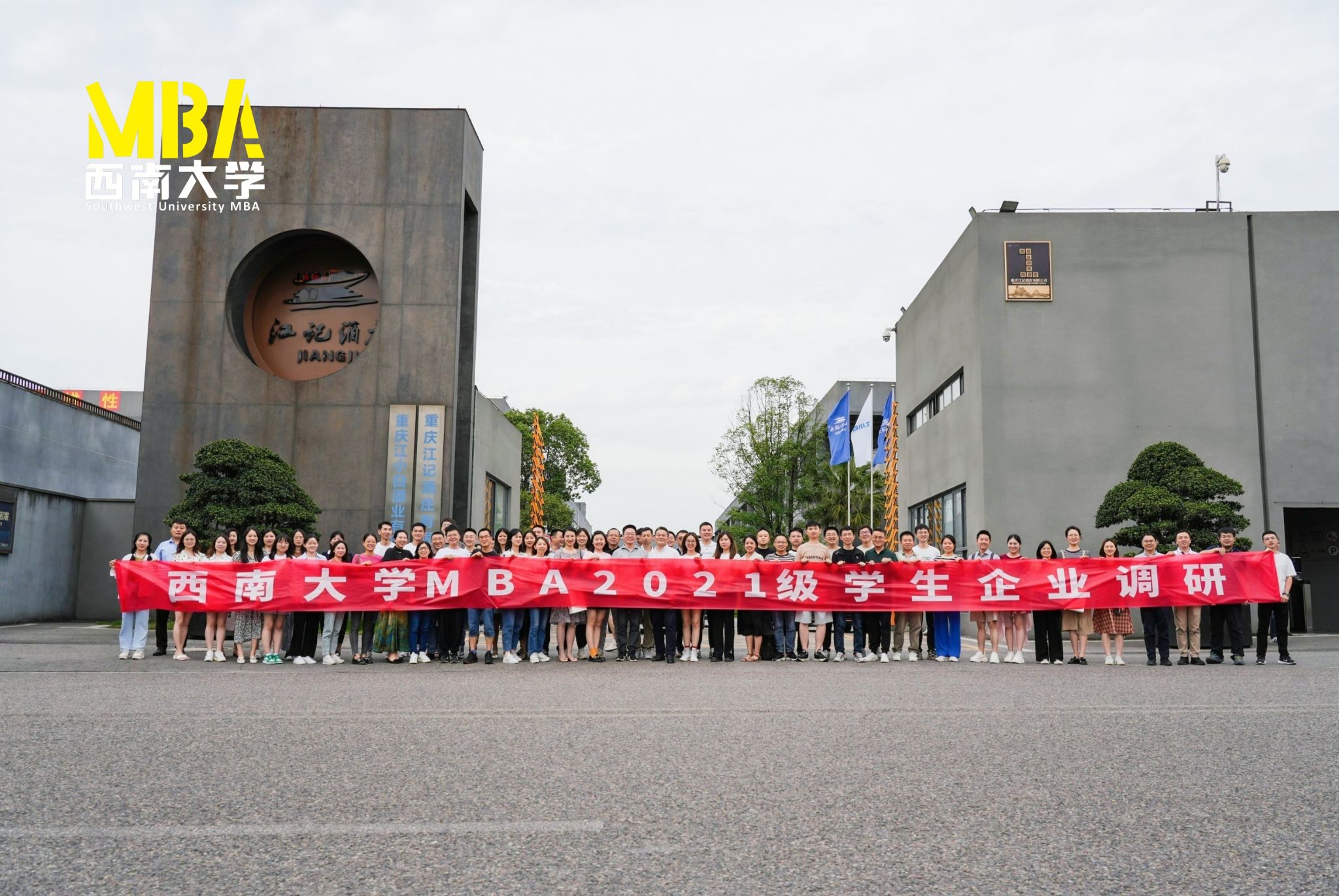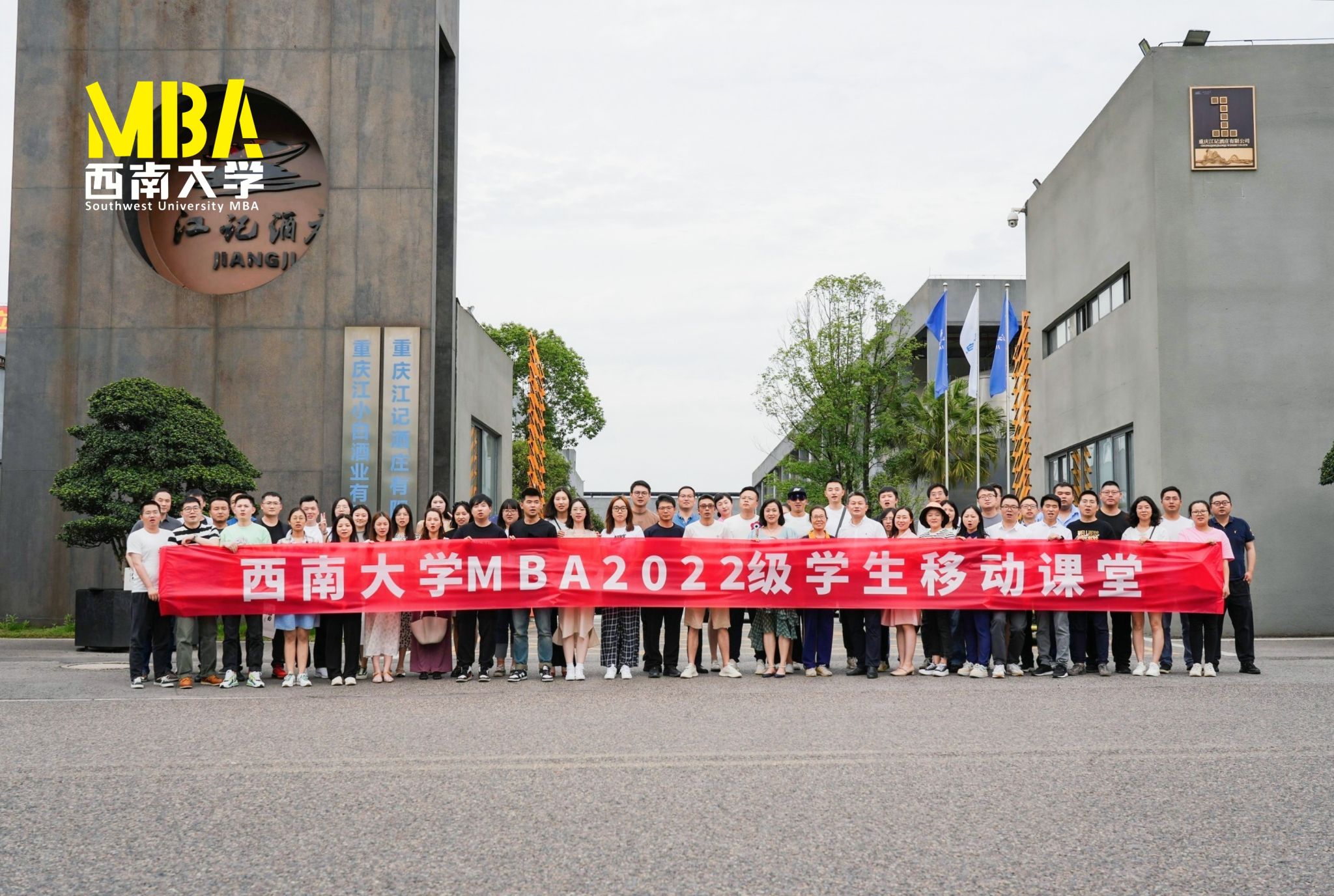 为进一步提升MBA员工理论与实践有机结合的能力,6月10日,bv伟德国际1946MBA2021级含弘创新实验班、大成班、网络集中班及2022级含弘班、大成班的同学们在MBA教育中心执行主任金绍荣、各班班主任的带领下,驱车前往江津区白沙镇,走进重庆江小白酒业有限公司(以下简称“江小白酒业”)开展企业调研及移动课堂。