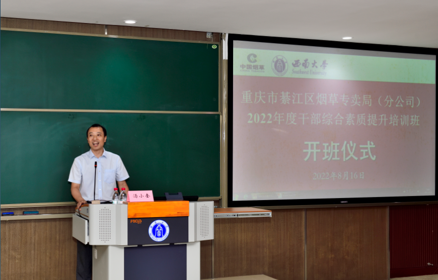 2022年8月16日上午,公司承办的“重庆市綦江区烟草专卖局(分公司)2022年度干部综合素质提升培训班”顺利开班。綦江区烟草专卖局(分公司)党组书记、局长、经理汤小奎同志,綦江区烟草专卖局(分公司)纪检组长、副局长郎学东同志,伟德国际VICTOR1946副经理黄庆华教授,公司高层培训中心主任苟佳欢,以及受训学员共40余人出席开班仪式。开班仪式由苟佳欢主任主持。
