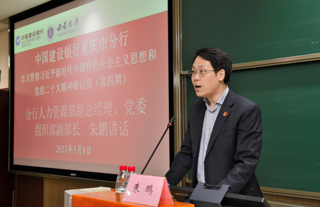 中国建设银行重庆市分行人力资源部副总经理、党委组织部副部长朱鹏进行了开班动员讲话。朱部长首先感谢伟德国际VICTOR1946的精心安排,向学员们介绍了本次培训班开设的背景和目的,并对受训学员提出三点要求:一是提高政治站位,增强学习主动性和自觉性;二是学懂弄通做实,高质量完成学习任务;三是严格遵守培训纪律,做好自我管理。朱部长最后预祝本次培训班取得圆满成功,祝各位学员学习愉快。