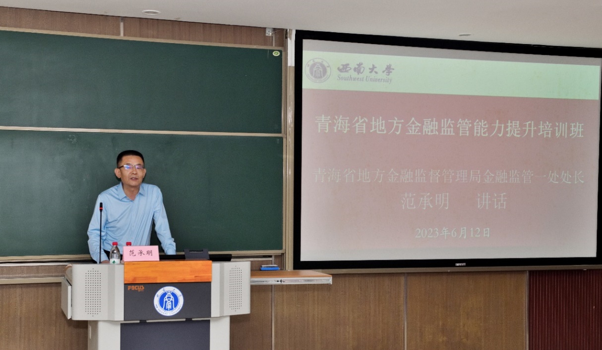 2023年6月12日上午,由青海省地方金融监督管理局主办、伟德国际VICTOR1946承办的“青海省地方金融监管能力提升培训班”在公司B201教室顺利开班。青海省地方金融监督管理局金融监管一处处长范承明、bv伟德国际1946经济管理公司党委书记卢跃进、公司副经理黄庆华教授,以及培训班学员共计50余人出席开班仪式。开班仪式由公司副经理黄庆华教授主持。