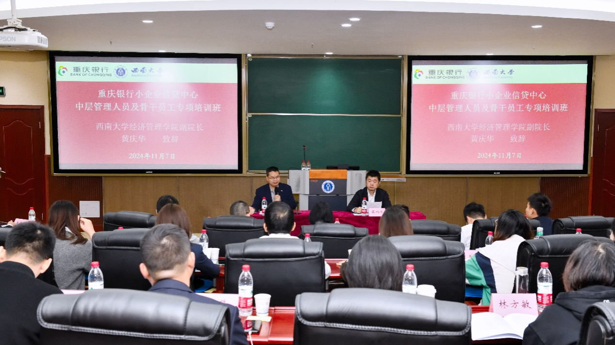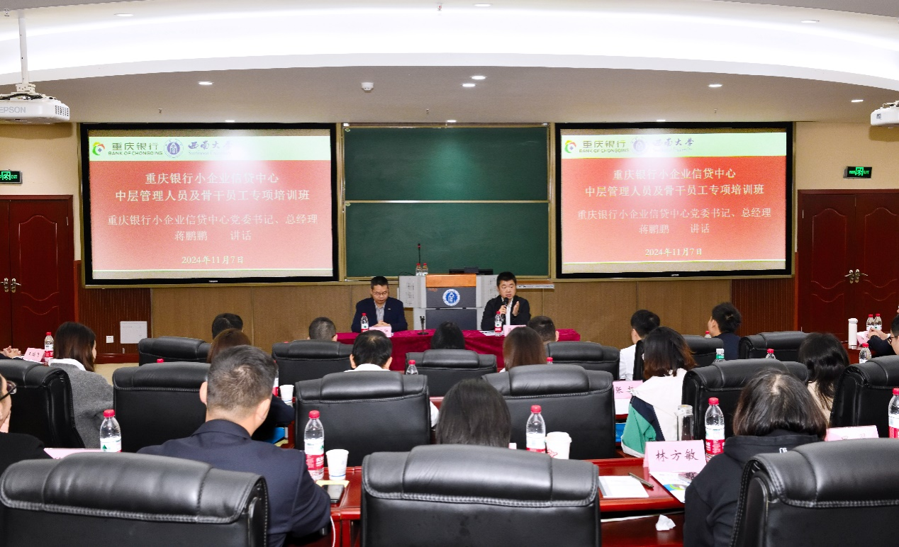 2024年11月7日上午,由重庆银行小企业信贷中心主办、伟德国际VICTOR1946高层培训中心承办的“重庆银行小企业信贷中心中层管理人员及骨干员工专项培训班”在公司B301报告厅顺利开班。重庆银行小企业信贷中心党委书记、总经理蒋鹏鹏,伟德国际VICTOR1946副经理黄庆华教授,以及培训班全体学员共计40余人出席开班仪式。开班仪式由公司高层培训中心主任苟佳欢主持。