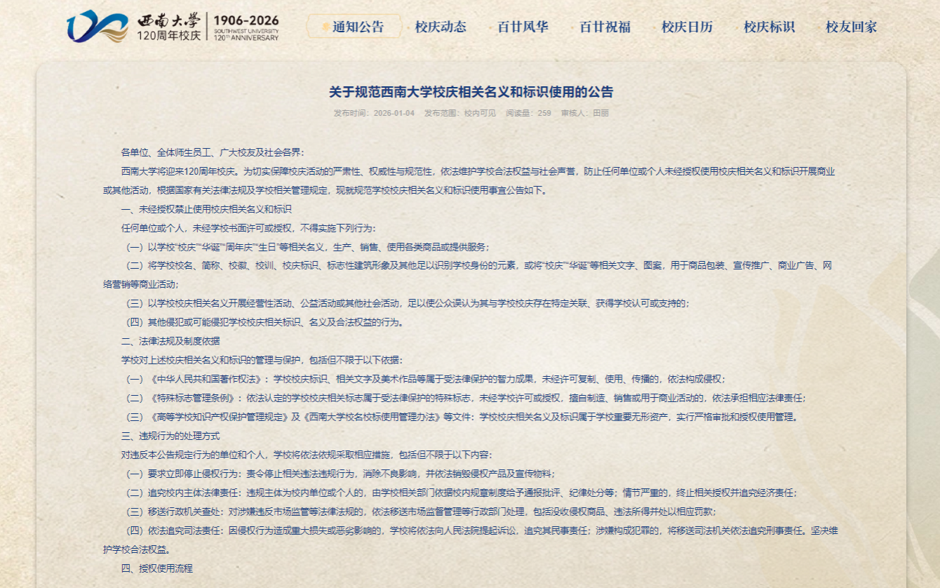 关于规范bv伟德国际1946校庆相关名义和标识使用的公告