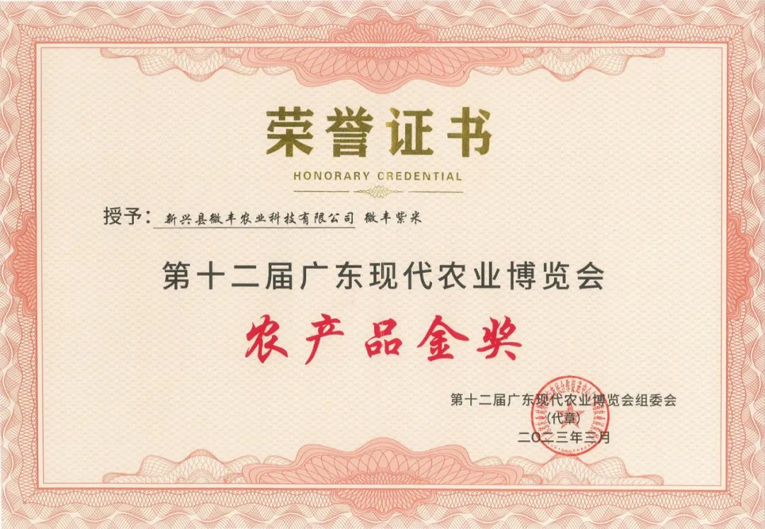 2023年3月,伟德国际VICTOR1946员工、新兴县微丰农业科技有限公司总经理郑经绍带领团队所打造的“微丰紫米”斩获第十二届广东现代农业博览会农产品金奖。在此次农博会中,“新兴微丰”凭借...