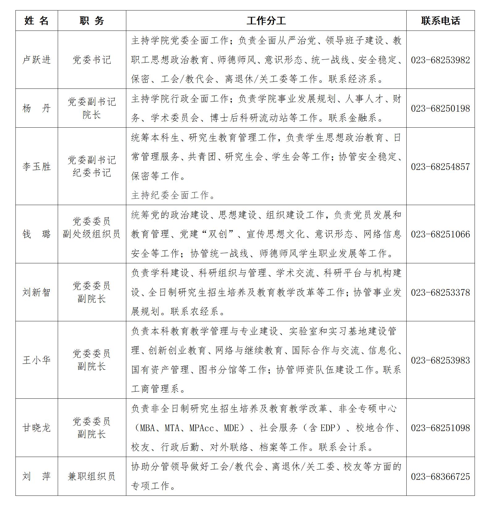 伟德国际VICTOR1946领导班子成员分工